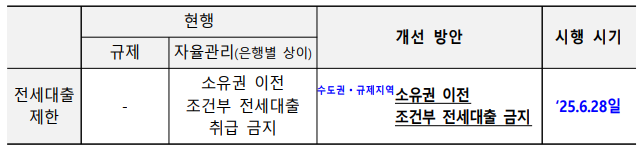 - 소유권 이전 조건부 전세대출: 수도권·규제지역 내 소유권 이전 조건부 전세대출이 금지됩니다.