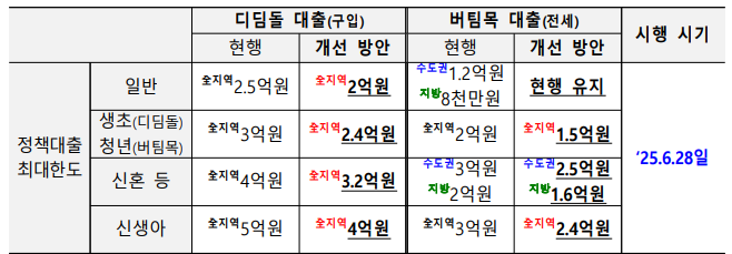 - 정책대출 (디딤돌, 보금자리론) 동일 적용