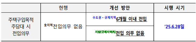 - 수도권, 규제지역내 생애 최초 주택구입 LTV가 80% → 70% 강화 및 전입의무 (6개월 이내)
