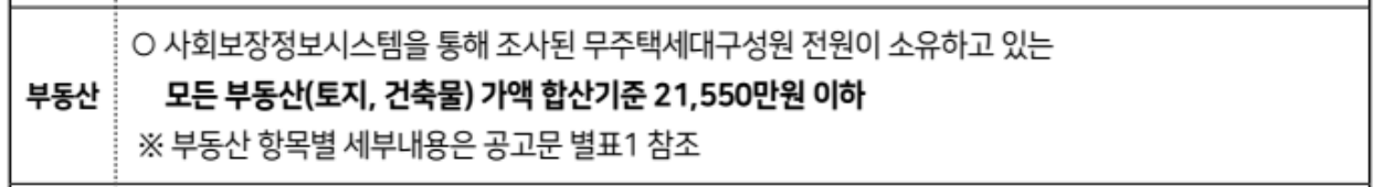 - 부동산 (전세보증금 포함)을 포함한 자산(자동차 제외)하여 선택하시면 됩니다. 여기서 대출이 있는 경우 총자산 - 대출금액으로 선택하시면 됩니다. 다만 SH에서 시행한 "2025년 제 1차 보증금지원형 장기안심주택 입주자 모집공고"의 아래 처럼 대출금 포함하여 총자산으로 평가하는 경우도 있기 때문에 이러한 경우도 공고문 확인이 필요합니다!