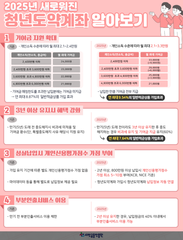 청년도약계좌는 청년의 자산 형성과 금융 역량 강화를 위한 매우 유용한 정책입니다. 가입 조건과 혜택이 다양하며, 다른 청년 지원 제도와 비교해 폭넓은 선택지를 제공합니다. 지금 바로 관심 있는 금융기관에 문의해 나에게 맞는 계좌를 준비해 보세요.